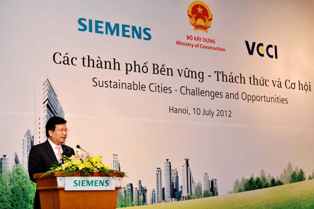 Phát biểu chào mừng Hội thảo, Phó Thủ tướng Hoàng Trung Hải đánh giá cao sáng kiến tổ chức Hội thảo này của Bộ Xây dựng, VCCI và tập đoàn Siemens, vì Hội thảo này giải quyết đúng vào nhu cầu của Việt Nam hiện nay, với những thách thức mà Việt Nam đang phải đương đầu về phát triển bền vững.