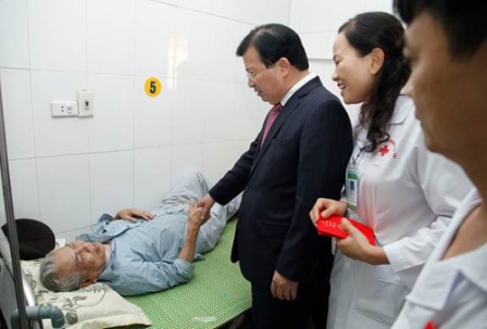 Ngoài việc chúc mừng các y, bác sỹ Bệnh viện Xây dựng Việt Trì nhân kỷ niệm 60 năm Ngày Thầy thuốc Việt Nam, Bộ trưởng đã trực tiếp xuống các phòng bệnh thăm hỏi, động viên các bệnh nhân đang khám, điều trị tại Bệnh viện.