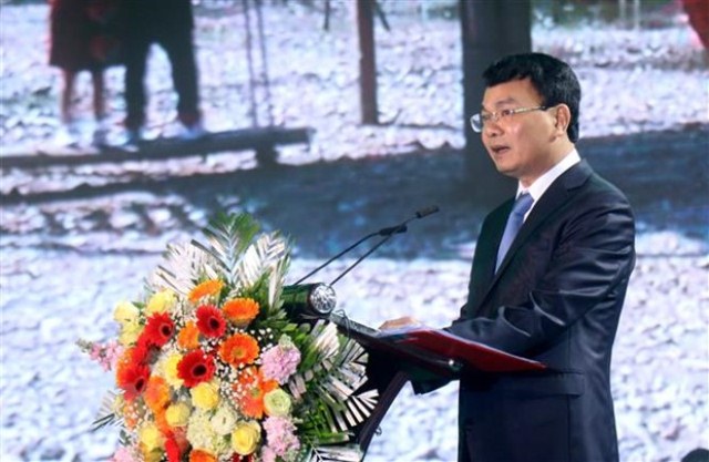 Chủ tịch Ủy ban nhân dân tỉnh Lào Cai Đặng Xuân Phong phát biểu tại buổi lễ. (Ảnh: Quốc Khánh/TTXVN)