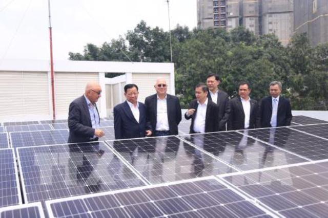 Hệ thống điện mặt trời áp mái công suất 51KWp tại tòa nhà điều hành VSIP 1. Ảnh: Nguyễn Văn Việt - TTXVN