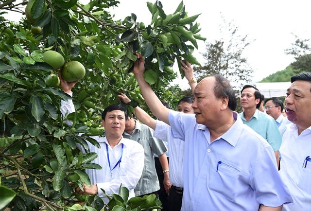 Thủ tướng Nguyễn Xuân Phúc thăm mô hình trang trại của ông Nguyễn Tuấn Anh ở xóm 8, xã Nam Giang - Ảnh: VGP/Quang Hiếu