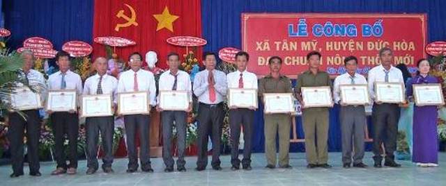 Chủ tịch UBND tỉnh Long An tặng Bằng khen cho 6 tập thể và 5 cá nhân có thành tích xuất sắc trong xây dựng nông thôn mới. Đồng thời UBND tỉnh cũng trao tặng cho xã số tiền 300 triệu đồng để tiếp tục nâng chất các tiêu chí giai đoạn tiếp theo.