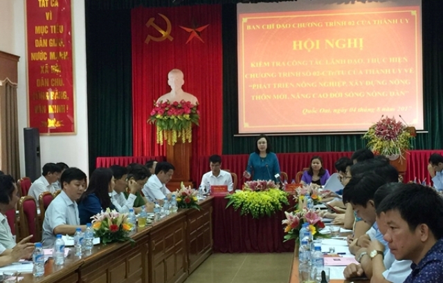 Phát biểu tại buổi làm việc, đồng chí Nguyễn Văn Thọ, Bí thư Huyện ủy Quốc Oai cho biết: ngoài việc hoàn thành các tiêu chí về hạ tầng, phát triển kinh tế huyện cũng tích cực thực hiện các nhiệm vụ về công tác an ninh trật tự, xây dựng hệ thống chính trị trong sạch vững mạnh, quan tâm vấn đề môi trường. Về nâng cao đời sống nhân dân, vừa qua, huyện đã phát triển các mô hình kinh tế, có nhiều mô hình cho thu nhập trung bình từ 300 đến 400 triệu đồng 1 ha/năm.