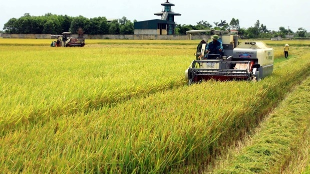 Harvesting the 2020 spring rice crop in Hoa Binh commune of Vu Thu district, Thai Binh province (Photo: VNA)