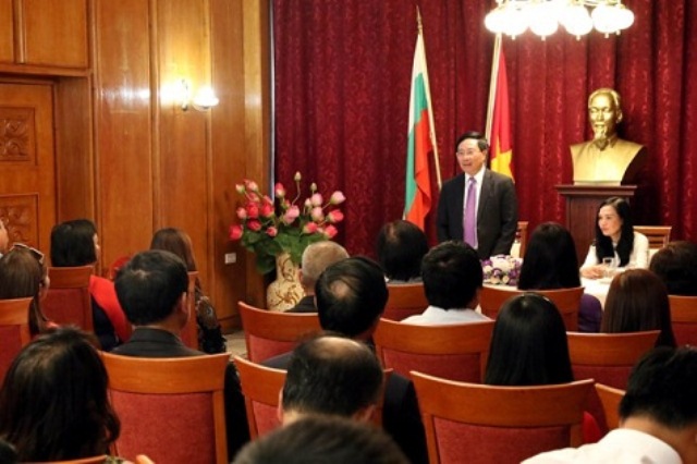 Phó Thủ tướng Phạm Bình Minh phát biểu tại cuộc gặp với các nhân viên Đại sứ quán Việt Nam tại Bulgaria
