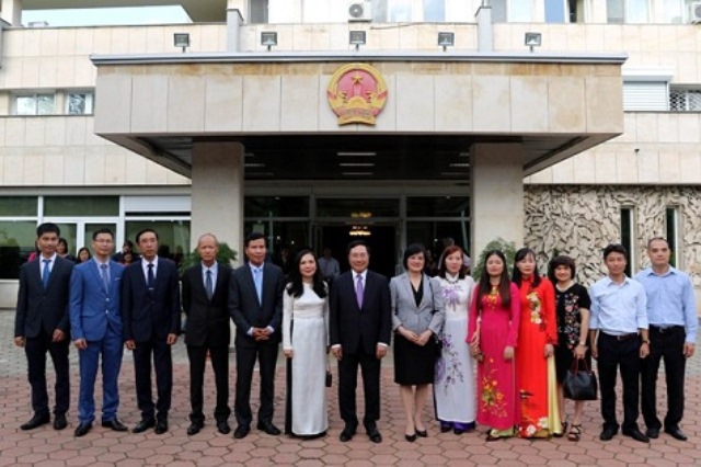 Chiều ngày 3/7, Phó Thủ tướng Phạm Bình Minh và đoàn đã đến thăm Đại sứ quán Việt Nam tại Bulgaria, gặp gỡ và nói chuyện với cán bộ Đại sứ quán và đại diện cộng đồng người Việt Nam tại Bulgaria.