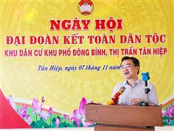 Ngày 7/11, Ủy viên Ban Chấp hành Trung ương Đảng, Bộ trưởng Bộ Xây dựng Nguyễn Thanh Nghị đến dự Ngày hội Đại đoàn kết toàn dân tộc tại khu phố Đông Bình, thị trấn Tân Hiệp, huyện Tân Hiệp, tỉnh Kiên Giang nhân kỷ niệm 94 năm Ngày truyền thống Mặt trận Tổ quốc Việt Nam (18/11/1930-18/11/2024).