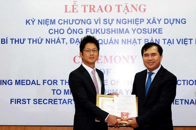 Ceremony of awarding medal “For the cause of construction industry development” title to Mr Fukushima Yosuke – First Secretary of the Japanese Embassy in Vietnam