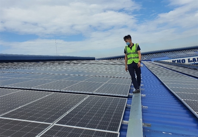 A solar power system installed on the roof of a factory in HCM City. The city has launched an award to encourage rental houses to do the same. — Photo courtesy of EVNHCMC
