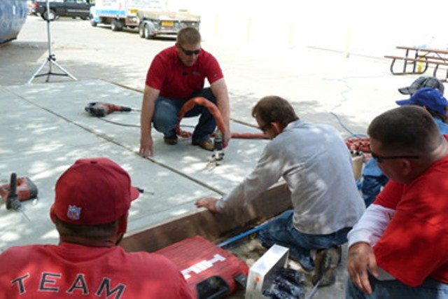 Nhân viên Foundation Support Works khoan lỗ để bơm bọt PolyLevel xử lý đường ray bị lún.