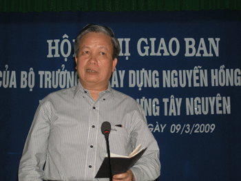 Hôm qua 9.3, Bộ trưởng Bộ Xây dựng Nguyễn Hồng Quân đã chủ trì Hội nghị giao ban cụm Tây Nguyên tại TP.Buôn Ma Thuột tỉnh Đăk Lắk. Tham dự hội nghị có đại diện các Cục, Vụ, Viện chức năng và lãnh đạo Sở Xây dựng các tỉnh khu vực Tây Nguyên.