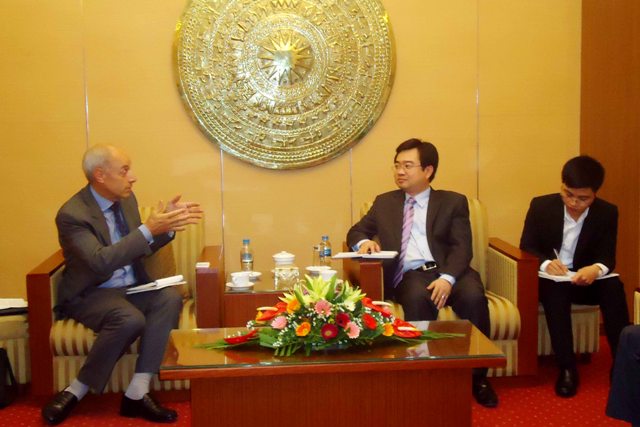 Thứ trưởng Nguyễn Thanh Nghị và ngài Denis Flory tại buổi tiếp
