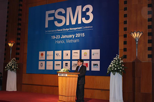 Ngày 19/1, tại Hà Nội đã diễn ra Hội nghị quốc tế lần thứ 3 về “Quản lý bùn thải từ hệ thống thoát nước và các công trình vệ sinh – FSM3 – 2015”. Hội nghị do Bộ Xây dựng cùng với Hiệp hội nước quốc tế (IWA), Tổ chức Sáng kiến Thành phố thông thái (WSCI), Hội cấp thoát nước Việt Nam (VWSA), Viện Khoa học và Kỹ thuật Môi trường (IESE) - ĐH Xây dựng phối hợp tổ chức. Tham dự Hội nghị có Thứ trưởng Bộ Xây dựng Cao Lại Quang cùng hơn 700 đại biểu đến từ 55 nước trên thế giới.