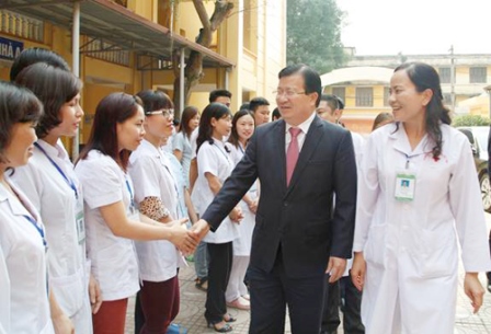 Ngoài việc chúc mừng các y, bác sỹ Bệnh viện Xây dựng Việt Trì nhân kỷ niệm 60 năm Ngày Thầy thuốc Việt Nam, Bộ trưởng đã trực tiếp xuống các phòng bệnh thăm hỏi, động viên các bệnh nhân đang khám, điều trị tại Bệnh viện.