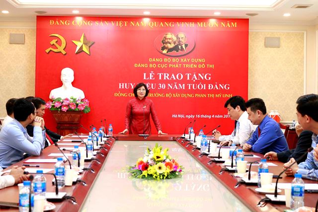 Phát biểu tại buổi Lễ, Bộ trưởng Phạm Hồng Hà chúc mừng đồng chí Phan Thị Mỹ Linh được trao tặng Huy hiệu 30 năm tuổi Đảng - phần thưởng cao quý ghi nhận quá trình phấn đấu, đóng góp và trung thành với lý tưởng, với sự nghiệp cách mạng của Đảng đối với đảng viên Phan Thị Mỹ Linh, là vinh dự không chỉ riêng của đồng chí Phan Thị Mỹ Linh mà còn là niềm tự hào chung của Đảng bộ Cục Phát triển Đô thị và Đảng bộ Bộ Xây dựng.