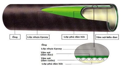 Tấm sợi thuỷ tinh đã tẩm thấu được kéo vào trong đoạn ống cần sửa chữa.