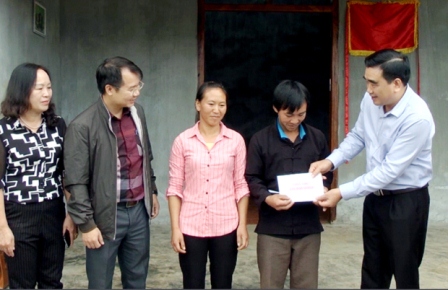Lãnh đạo huyện Quản Bạ trao tiền hỗ trợ làm nhà của tỉnh cho gia đình anh Sùng Thìn Quý, thôn Na Cho Cai, xã Nghĩa Thuận (Quản Bạ).