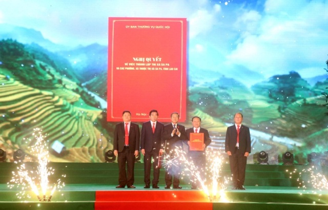 Tại buổi lễ, Đại tướng Đỗ Bá Tỵ, Phó Chủ tịch Quốc hội, đã trao Nghị quyết của Ủy ban Thường vụ Quốc hội về việc thành lập thị xã Sa Pa cho Ủy ban Nhân dân thị xã Sa Pa. Theo đó, chính thức thành lập thị xã Sa Pa trên cơ sở toàn bộ 681,37km2 diện tích tự nhiên và quy mô dân số 81.857 người. Đồng thời, 6 phường thuộc thị xã Sa Pa được thành lập, gồm Cầu Mây, Hàm Rồng, Ô Quý Hồ, Phan Si Păng, Sa Pa và Sa Pả.