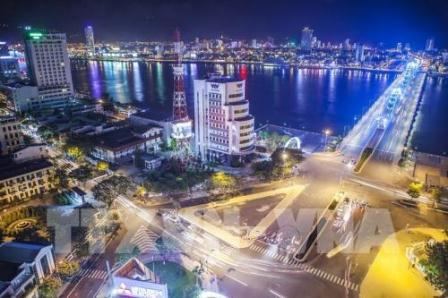 Một góc thành phố Đà Nẵng bên bờ sông Hàn rực sáng trong đêm. Ảnh: Trọng Đạt – TTXVN