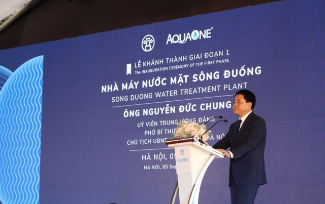 Phát biểu tại Lễ khánh thành, ông Nguyễn Đức Chung – Chủ tịch UBND TP Hà Nội nhận định: “Lễ khánh thành giai đoạn 1 NMNM Sông Đuống ngày hôm nay khẳng định chủ trương đúng đắn của Chính phủ, Thủ tướng Chính phủ và thành phố trong việc huy động mọi nguồn lực xã hội hóa đầu tư xây dựng nhà máy lọc nước mặt để phục vụ cho nhân dân; đồng thời, đây cũng là minh chứng rõ nét cho những cam kết, nỗ lực của thành phố trong việc thu hút, lựa chọn nhà đầu tư có đủ năng lực, cũng như việc hỗ trợ, tạo mọi điều kiện thuận lợi nhất cho nhà đầu tư về thủ tục, mặt bằng trong quá trình triển khai dự án. Sự thành công của dự án không chỉ thể hiện sự quyết tâm, kiên định trong mục tiêu hiện thực hóa công tác phát triển dự án, khả năng tổ chức, điều hành và quản lý đầu tư xây dựng những dự án ngành Nước có quy mô lớn của Tập đoàn AquaOne, Cty CP nước mặt sông Đuống mà còn thể hiện ý chí, quyết tâm và trình độ kỹ thuật của công nhân, người lao động Việt Nam. Thông qua việc đầu tư xây dựng hệ thống cung cấp nước sạch với quy mô lớn, mang tính liên vùng, liên tỉnh, công trình NMNM sông Đuống đã góp phần từng bước hiện thực hóa mục tiêu chiến lược trong phát triển một hệ thống cấp nước sạch bền vững, có khả năng cung cấp và đáp ứng đủ nhu cầu sử dụng nước sạch ổn định và lâu dài cho Thủ đô và các vùng lân cận”.
