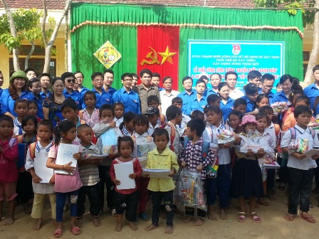 Đoàn TNCS HCM Bộ Xây dựng tặng quà các em học sinh có hoàn cảnh đặc biệt khó khăn của trường Tiểu hoc 2 Thạch Ngàn