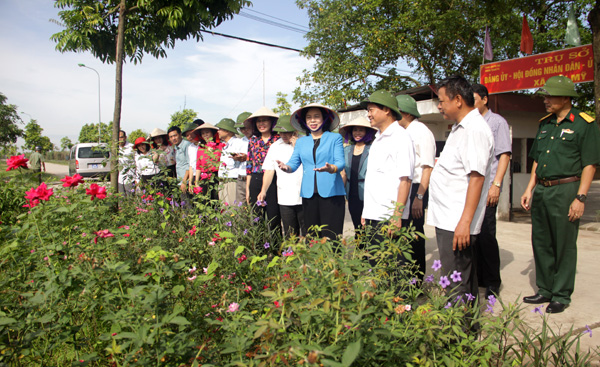 Phó Bí thư Thường trực Ngô Thị Thanh Hằng kiểm tra công tác vệ sinh môi trường, trồng cây và hoa ven đường tại xã Yên Mỹ